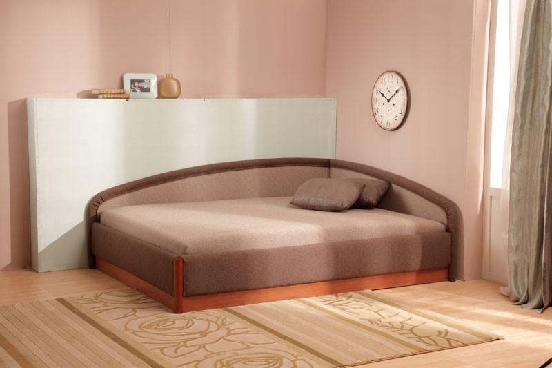 Of course, the main distinguishing feature of the corner double bed is the presence of a side wall in addition to the headboard.