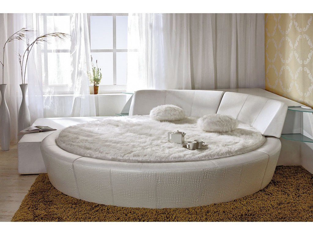 Rectangular corner double beds are a more practical option than round beds, since not every bedroom has enough space for a huge round bed. In principle, the difference lies only in the shape and size, the rest of the types of these beds are almost identical.