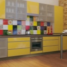 There are ready-made options for multi-colored ceramics. An imitation of a pattern laid out from different-colored parts of different shapes can be created on it. Or a modern mosaic that should not be laid out in small pieces, it has already been applied and forms a plate of a large size. In the center of the apron of multicolored ceramics, you can lay out an abstract pattern or create a whole picture.