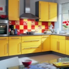 To create a bright and contrasting apron, a combination of two colors will be suitable; for softer and pastel shades, 3-4 types can be selected. For the kitchen, any combination of colors will be suitable, which will be associated with delicious food and cause appetite. For example, orange tile and lemon, olive and burgundy, purple and green.