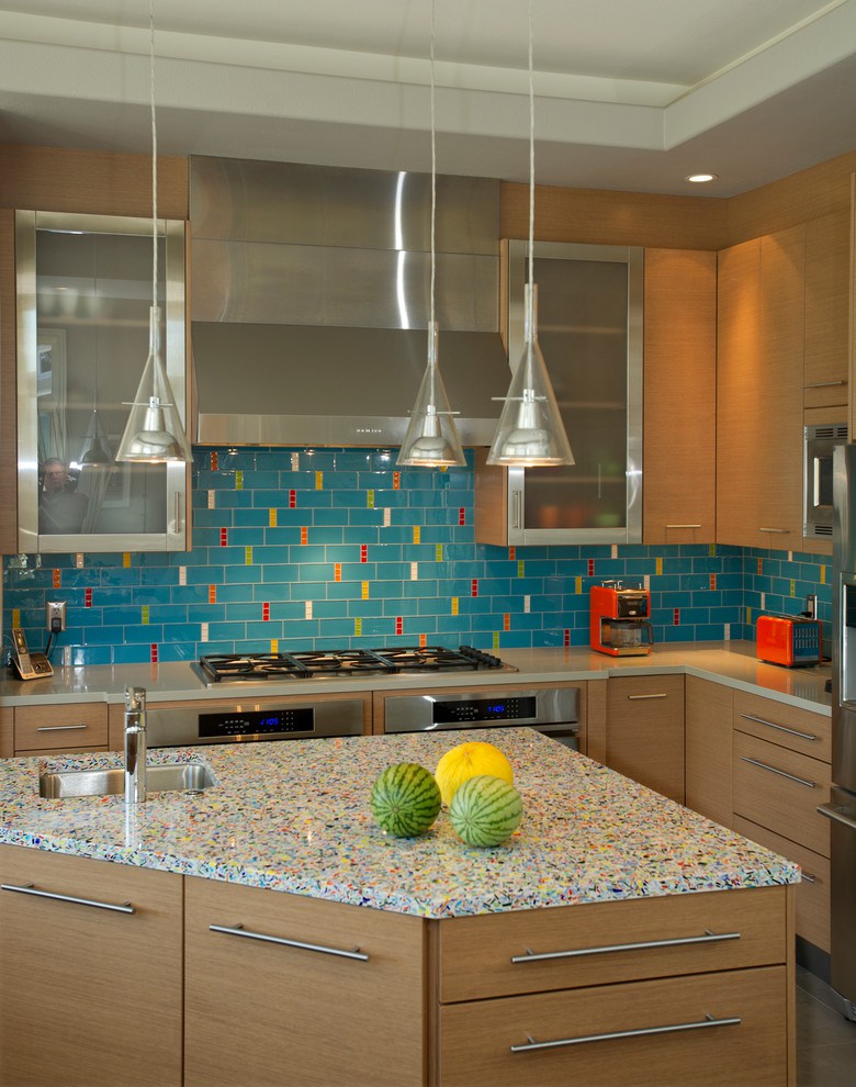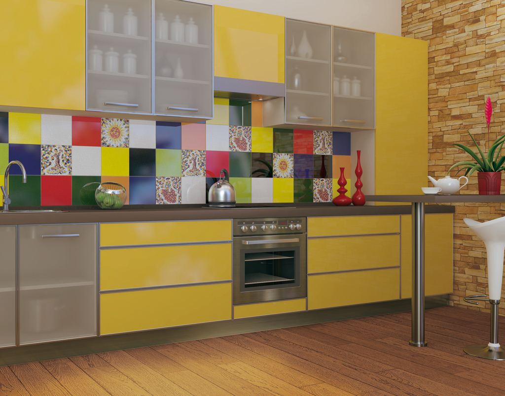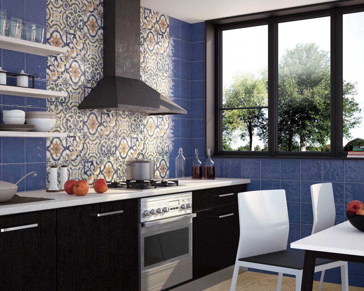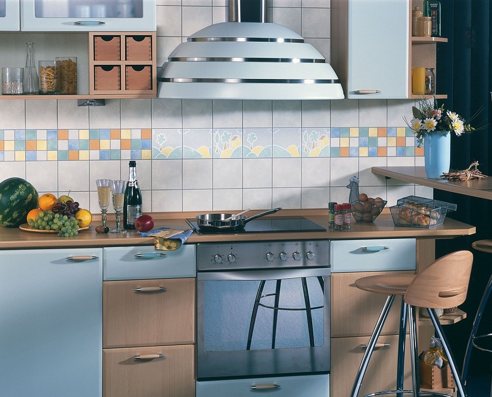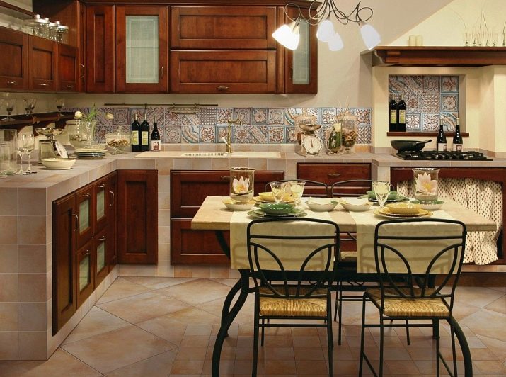 If you decide to use tiles in the decoration of the kitchen, then the colored one is ideal for this. To create a stylish interior, it is enough to harmoniously combine colors to match the general concept of the room.