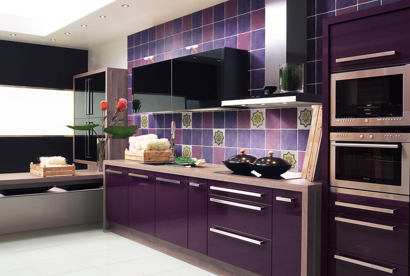 Purple tiles are ideal for Provence style kitchens. It emphasizes the sophistication of a light interior. It can be imitation lace pattern or floral ornament. On the apron will look good game shades of purple, lilac, lavender, lilac. Also, blue, white and lilac tiles combine well within this style.