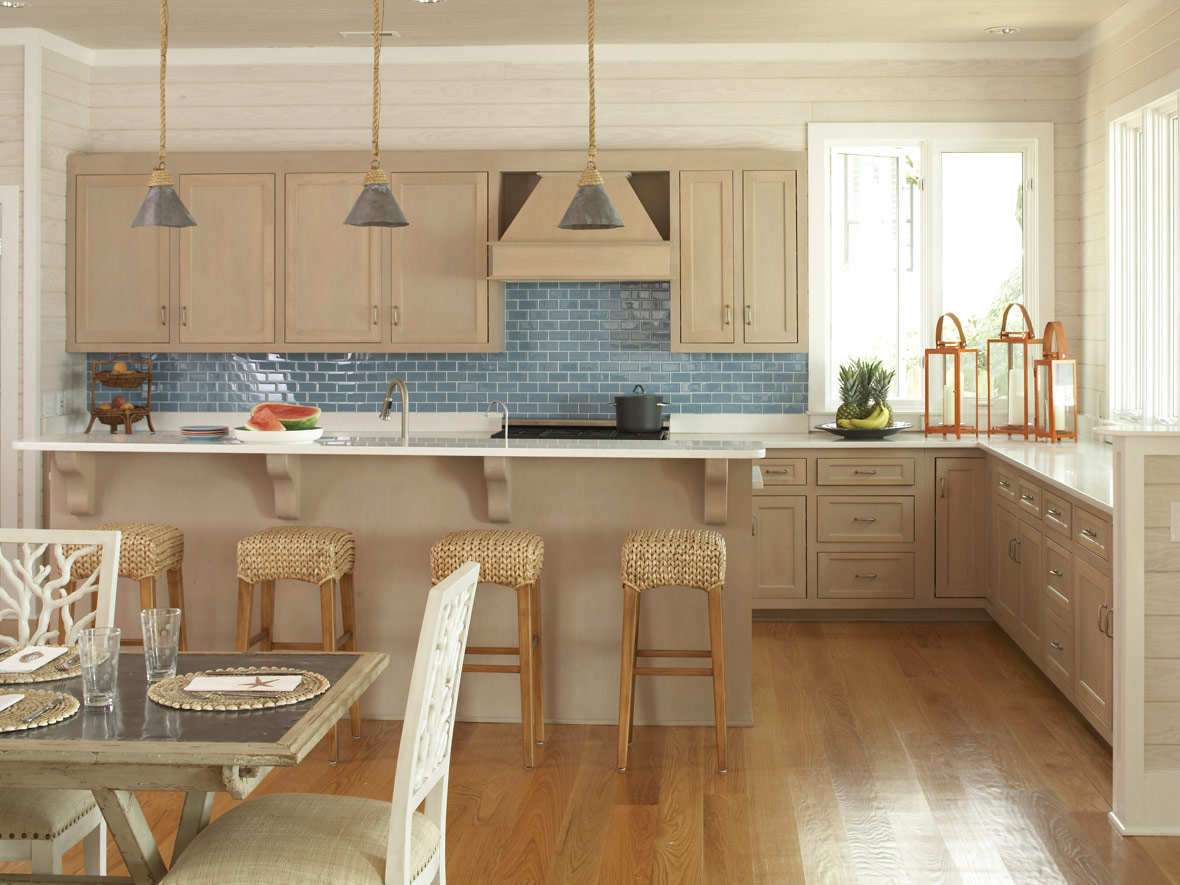 Beige cuisine evokes sweet associations with chocolate cake, creme brulee. At the same time, bright colors visually expand the space, so beige color is very popular when creating the interior of a small room. In such a monochrome kitchen you want to create color accents. Usually, this role is given to the apron, for which it is easy to choose a bright tile.