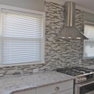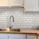 It is believed that large plates visually expand the space, but on a small area a large tile will not look. But the mosaic with a single color on the working wall will look like a single whole, without crushing the space into parts.
