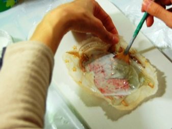 In order to preserve the color scheme of applications, choose glue and varnishes that do not contain oil additives. Not bad for decoupage acrylic paints on a water-based basis. To enhance the degree of reliability of the protective layer, varnish should be applied in several layers, each time waiting for the previous one to dry. Usually, the complete drying of the surface occurs within 24 hours.