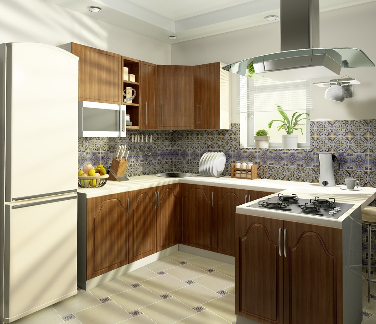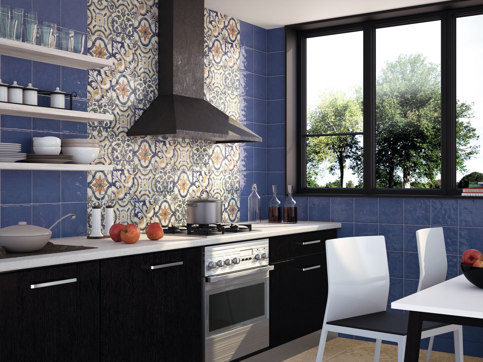 The color range of ceramic tiles should be in harmony with the general trend of the kitchen interior. It does not have to be all in the same range - you can play in contrasts.The main thing is that the contrast should be correctly chosen.