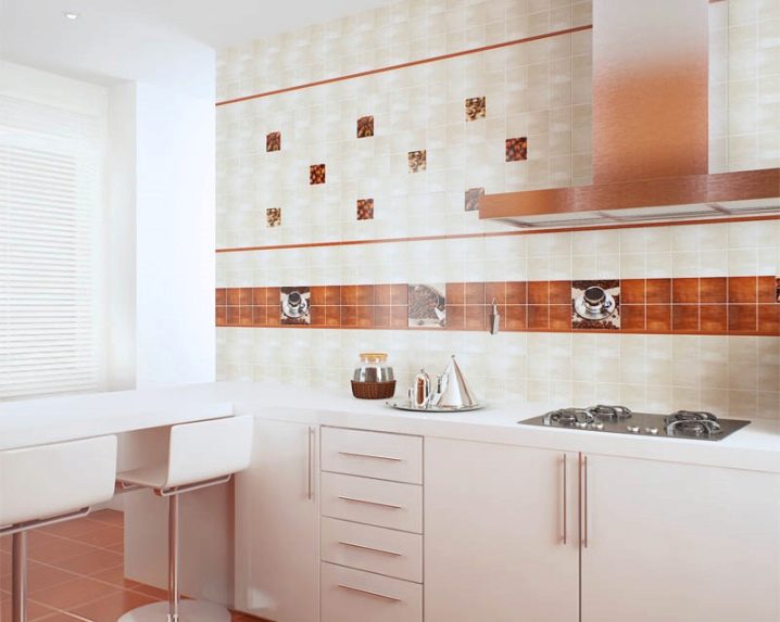 If you are going to combine tiles of several colors - they should not be too much. The optimal amount is two or three colors. At the same time, it is important that each of them has something in common with some elements that are present in the kitchen: curtains, wallpaper design, furniture, etc.