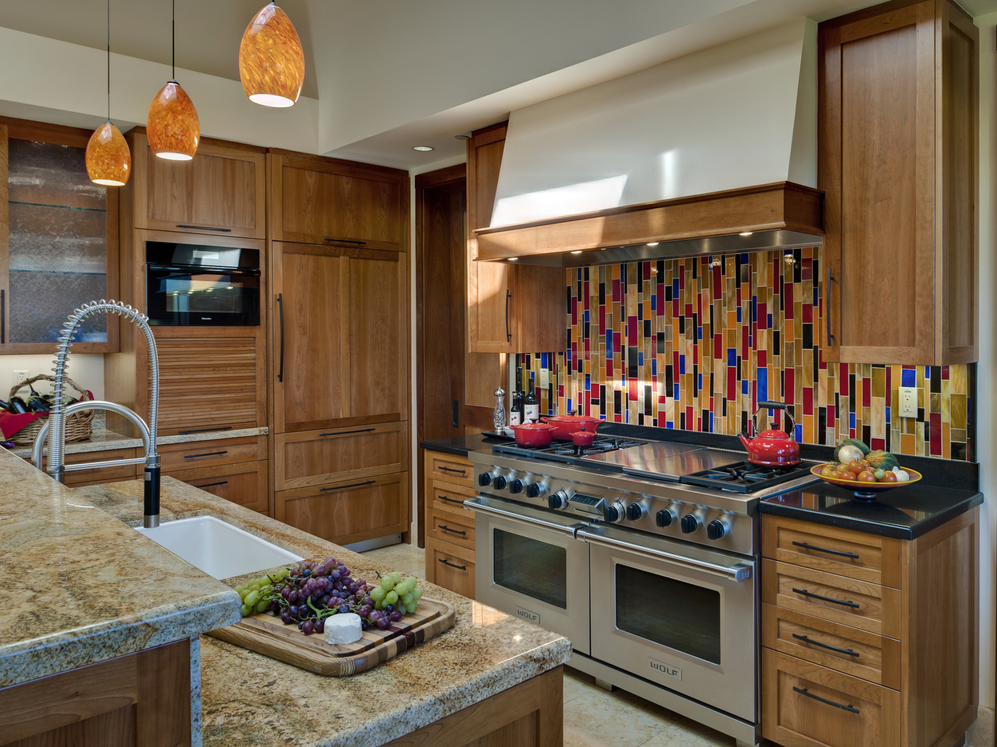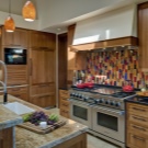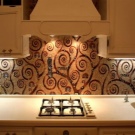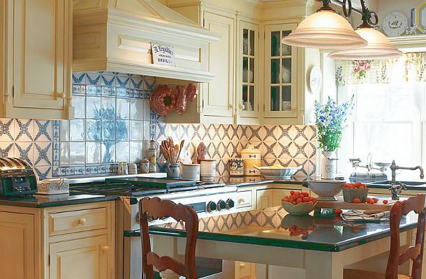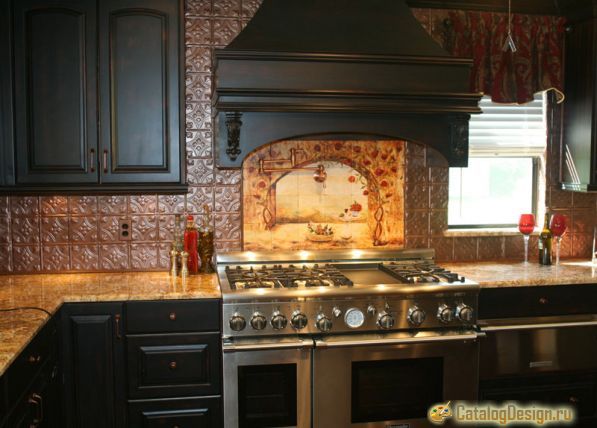If the kitchen is more of a cozy classic than a trendy high-tech, then you try not just to decorate one of the zones with a pattern, but to use such a technique as Arch (arch). With its help, you can create additional volumetric elements and the area near the stove will turn into something resembling a fireplace or a warehouse in an old cellar. Every time you cook your dishes, you will feel like a treacherous witch or a beautiful medieval maiden. Suitable for creative.