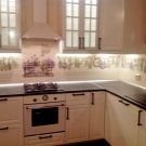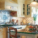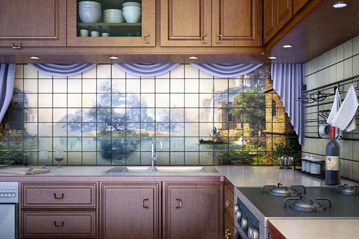 If you have chosen a ready-made cloth with a certain pattern, and decided that it should be located on the apron, please consider: the borders of the headset must coincide with the edges of the tile covering. Otherwise, the composition will look untidy, as if you got rid of some piece of furniture, although all the repairs were sharpened by the original set.