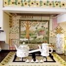 Mosaic. This may be a small tile. (2-3 centimeters wide) and multiple colors or slightly larger samples (with a side of 10 centimeters)which in themselves are additionally distinguished by ornaments and look a bit like a patchwork quilt.