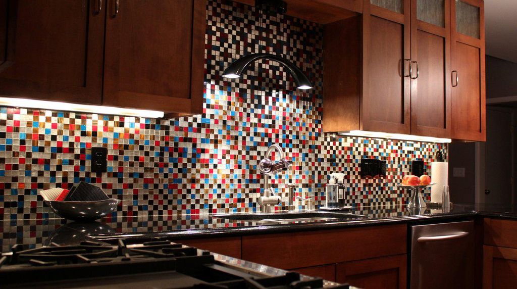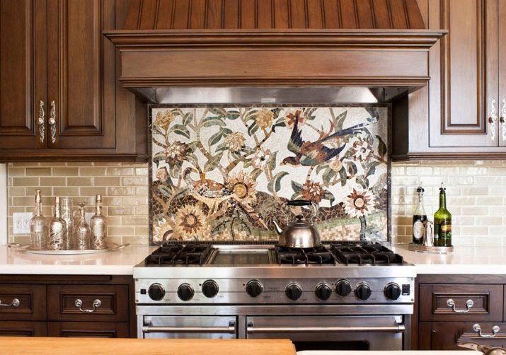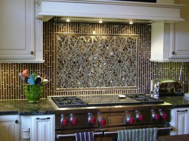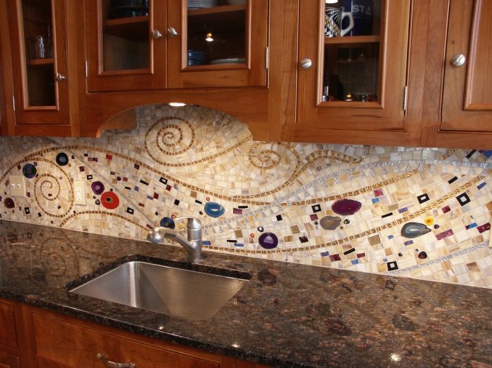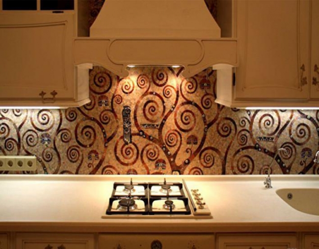 - We already mentioned mosaic, but do it again. This is spectacular, but due to the large number of small parts, many seams are formed. They are clogged with dirt and grease, which is not very welcomed by good housewives.