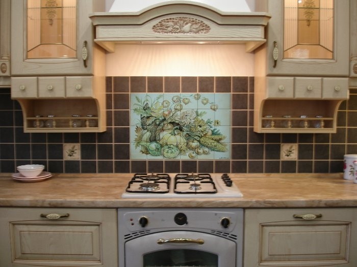 Hand painted tile - This is another style of exquisite jewelry. This option is similar to the first one, but the main difference is that the drawing will be unique. He will inspire you to prepare delicious dishes and gather the whole family, bringing incredible comfort and warmth to the house.