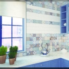 Ceramic tiles of type AA are preferred for facing the kitchen walls and decorating the apron, where the package shows a palm. The optimum thickness is 4 millimeters. The surface must be covered with a protective layer of enamel and not have a porous structure - so that it repels water well and is easily cleaned of grease and dirt (including using chemical detergents).