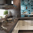 Choosing a tile for the kitchen, it is important to clearly understand what kind of result you need to get - after all, changing the wrong tile as easy as re-gluing the wallpaper will not work.Ceramic tiles usually occupy a large area of the kitchen area and often become its main accent. And therefore, even contrasting, the wall tile should be combined with the one that is laid on the floor, and the one that the working apron and countertop revets, and with all the furniture and accessories in the kitchen. Please note: do not just look like or match in color, but blend well!