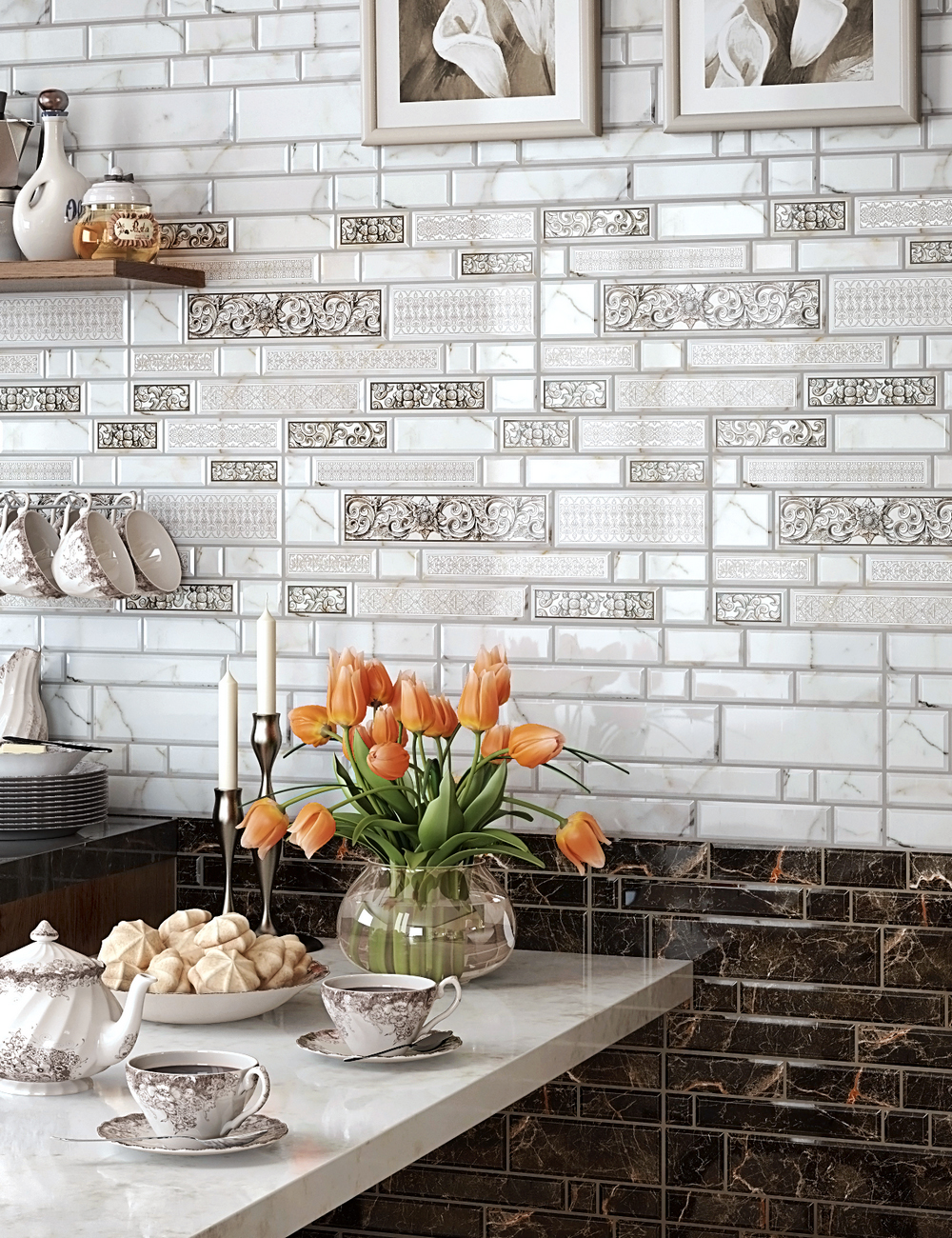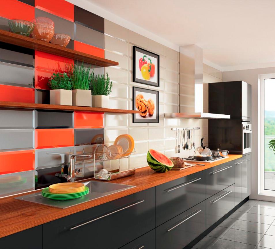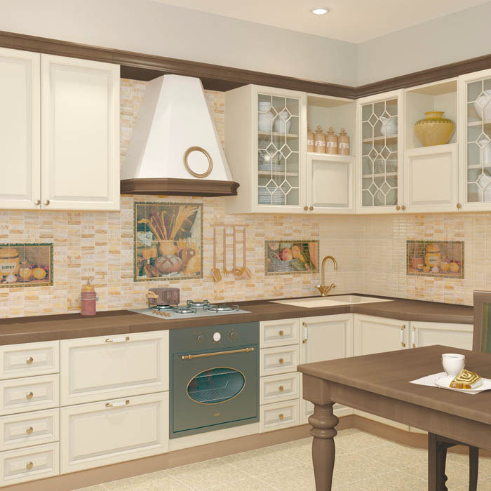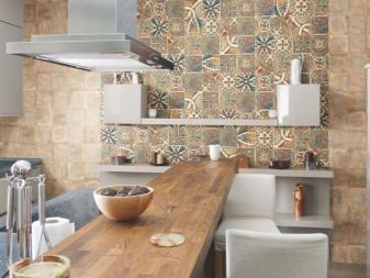 Ceramic tiles are good because, along with a rich appearance and a wide range of their size, colors and shapes, they are highly water resistant, are not deformed by the effects of grease, water and steam, are not afraid of contact with cleaning chemicals and are resistant to abrasion, impact and contact with hot items, which is especially valuable when arranging the kitchen. It is pleasant and easy to care for her.