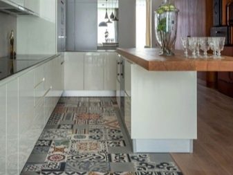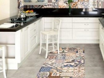 Durable and durable floors in the kitchen are obtained with ceramic tiles, on the packaging of which a foot is shown. The minimum thickness is permissible in 5 millimeters, and indicators of durability, wear resistance and resistance to the effects of chemicals should be maximum. Others simply cannot cope with the intense loads on the flooring, combined with the sudden temperature changes and the excessive humidity typical of the kitchen area. In addition, for the kitchen floor is better to choose a matte tile, which is safer than slippery glossy.