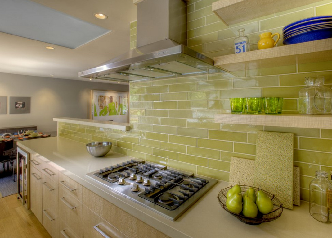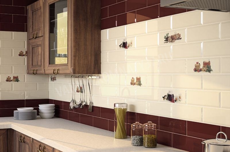 In the design of the kitchen interior, an important role is played by the shape, size, color, texture, style and, of course, the quality of the selected tile. For wall cladding, preference is usually given to glazed (size 15x15), since matte visually narrows the room, and glossy adds space. The rectangular wall tile has a certain optical effect - it is laid vertically, as if it makes the kitchen higher, and glued horizontally longer.