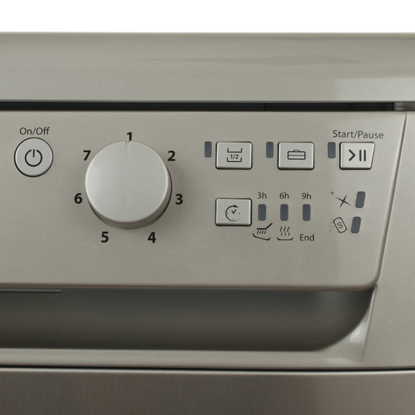 Free-standing model, the volume of dishes loaded at one time is also equal to nine sets. The device is practically no different from the previous version, except for the length of the delay in starting work. Here he is twelve hours, and in the analog - nine.