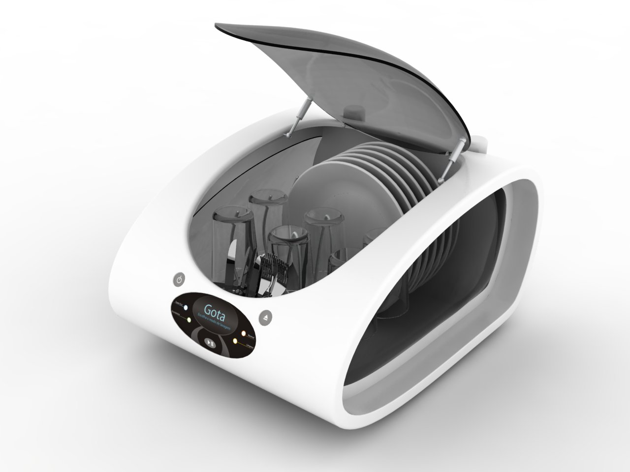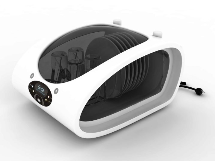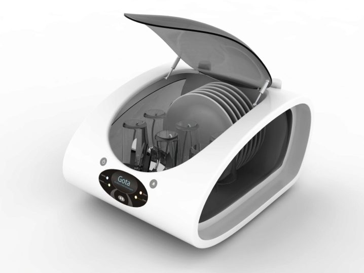 Gota - automatic machine for washing dishes in large quantities. She washes 6 sets of dishes or one set of coffee cups and glasses at a time. It has a rather original and unique look, slightly reminiscent of a CD player. This is a portable dishwasher, which means that it is not necessary to connect it to the plumbing and sanitary. This model is quite popular, despite the fact that it was launched into production only in 2016. Its main advantage is the low consumption of electricity and water, which significantly saves the family budget.