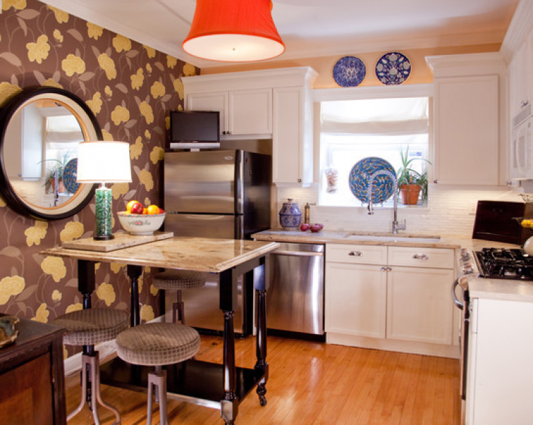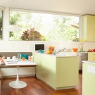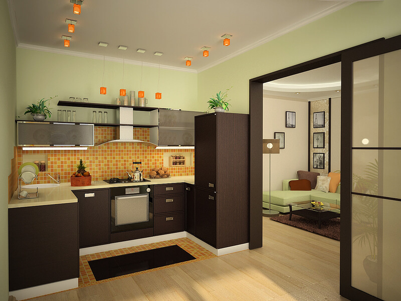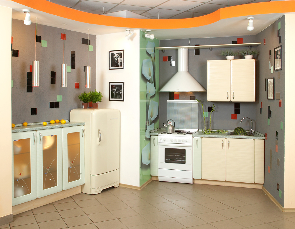 Juicy, summer colors will contribute to creativity. It will be particularly relevant for the kitchen-studio, as well as those hostesses who are looking for inspiration around the stove. Experts have collected some set of rules, using which you can achieve original, unusual design: