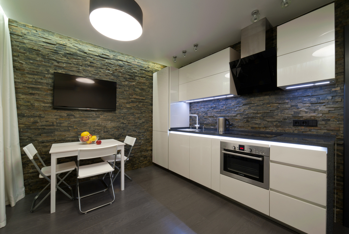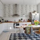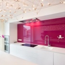 To the white kitchen it is better to choose a contrast that can be expressed not only in colors, but also in the presence of bright prints, patterns, 3D photo drawings, murals, etc. Caring for white facades will be somewhat routine, but the atmosphere created in combination with lime, strawberry, purple or mint walls worth not to get tired of admiring the created design. Preferring white ceramic tiles, wooden boards or plastic panels to color, try to choose the facades of black, blue, green. Thus, you can achieve the perfect look of the interior, live in an atmosphere of eco, botanical, boho-chic, rustic, etc.