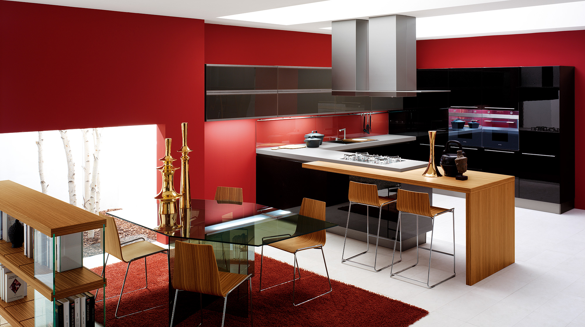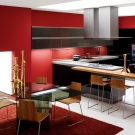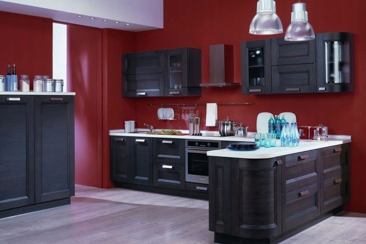 According to the designers, the most difficult is the selection of the color of the walls to the red kitchen. Despite the fact that it is a very popular, dynamic, spectacular shade, if not properly worked with it, it causes aggression and irritability. In order not to "break" the general entourage of the kitchen, try to choose a wall paint in the range of white, brown, gray, cream to the scarlet headset with bright coral, burgundy facades.