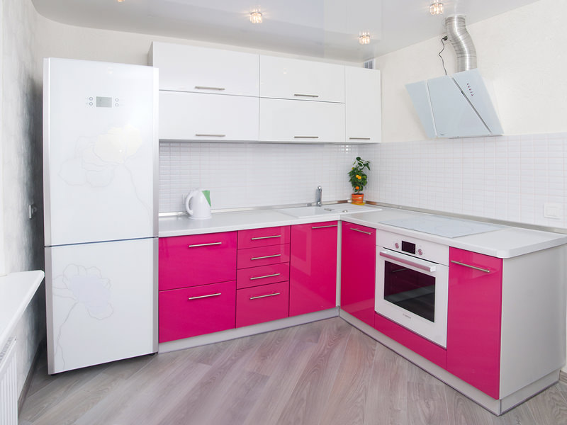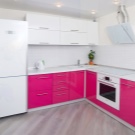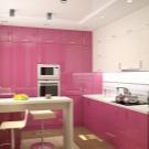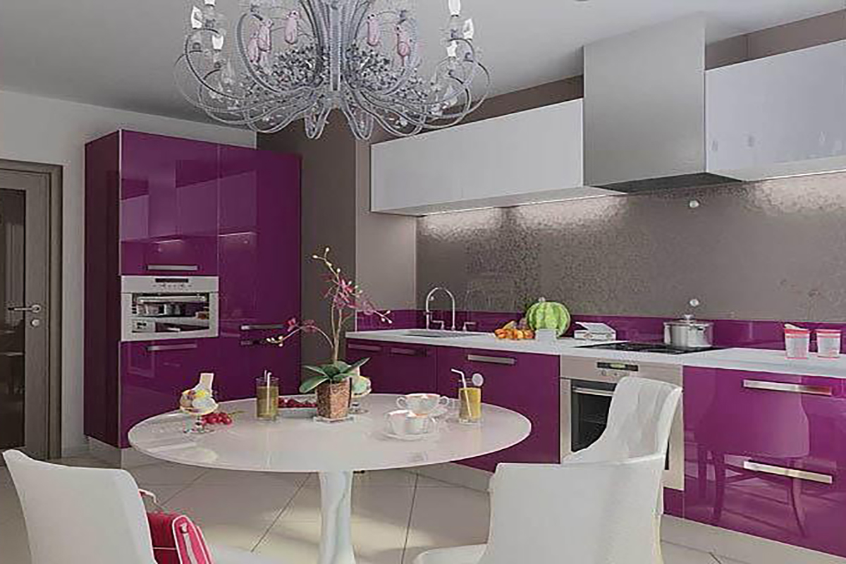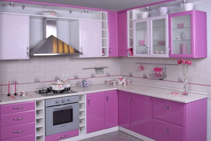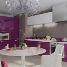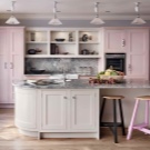 Owners of fine aesthetic flair fit new purple-pink in combination with muted green tonalities. In this case, it will be possible to create a doll style for the kitchen, the charm of which will surprise any guest. For large families and spacious kitchens, it is also appropriate to design the headset or walls with lilac, powder-pink shades. They have an amazing property to inspire, reassure, instill hope.