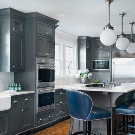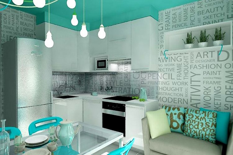In the gray designers recommend to execute facades, wall or floor cabinets, table top. In the turquoise color, you can perform all four walls of the kitchen and even a kitchen apron. The combination of graphite and menthol is in itself supernatural, so you should not think over special patterns, decor, create a composition in the form of a panel. You already find yourself in a luxurious, expensive apartment.