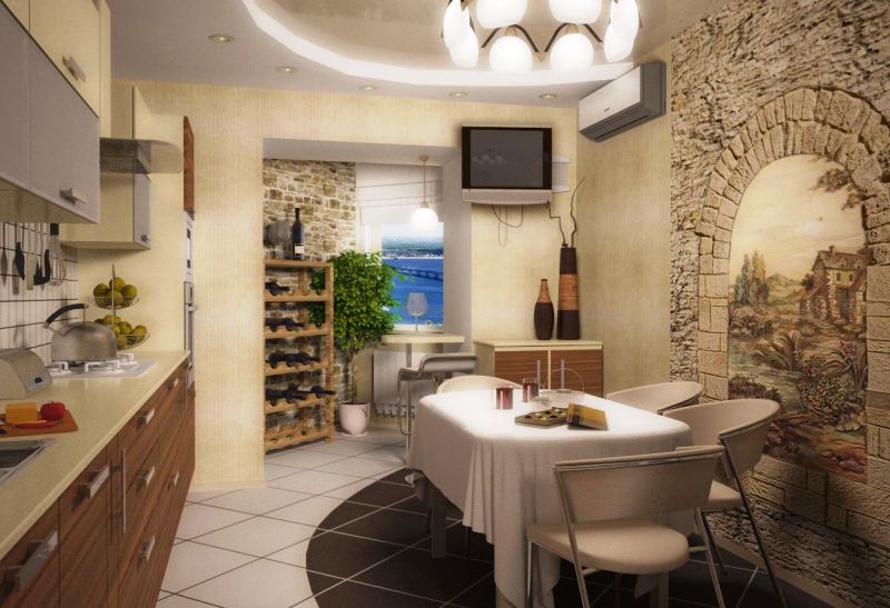 Not bad, this combination looks in rooms with eco-themes. The beauty of natural shades will be complemented by flowers in vases or vases, twigs, plant stems in decorative bottles, pots, wicker furniture.Conciseness, minimalism - this is what will surround the owners of the kitchen, executed in such a way.