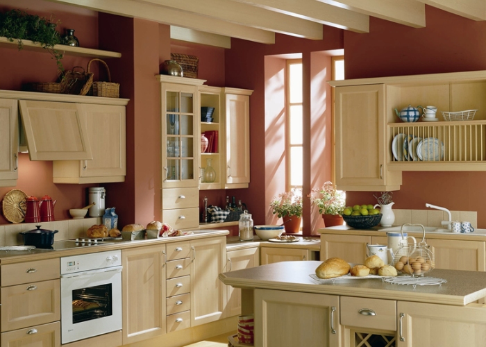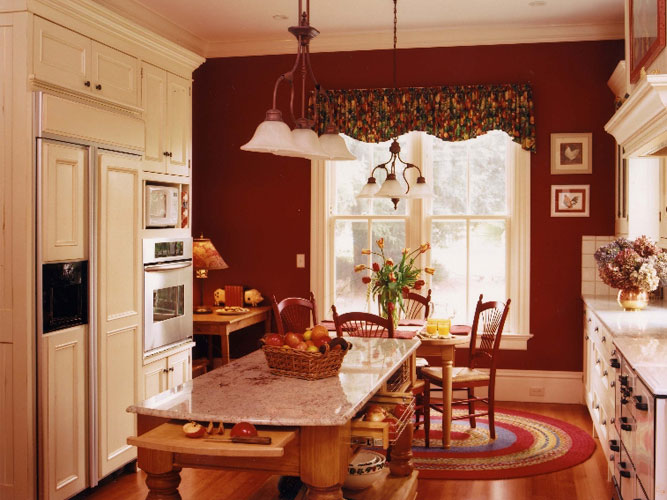 shade of burgundy, burgundy, marsala, red will suit the traditional white kitchen furniture;