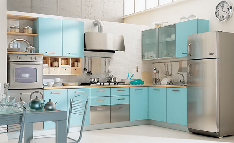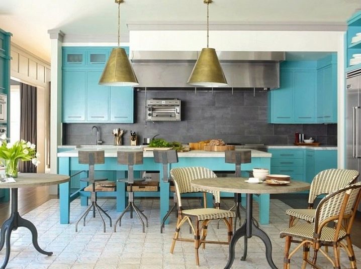 Do not lose sight gray-turquoise kitchen. In the future season, this combination is considered an absolute must have. The charming duet "50 shades of gray" and the most delicate turquoise shows not only an aesthetic, but also a therapeutic effect.Calm down, relax, tune in to a positive wave will help just such a combination of colors.