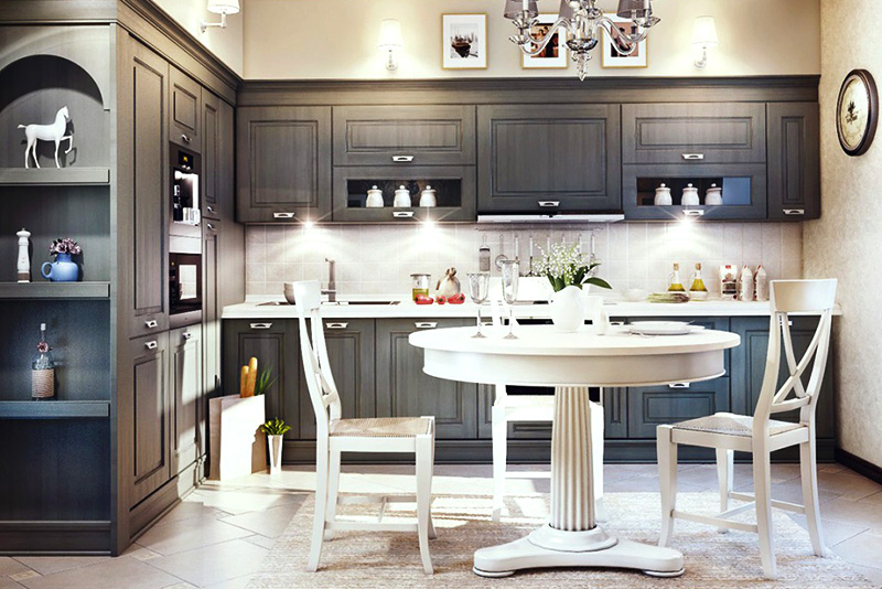 When making kitchen cover, pay attention to tonality of gray moss, sea pebbles, graphite. The whole palette of gray will no longer be as boring as in last year’s versions. Combining it with rich, bright natural shades of lemon, avocado, blue sky, you can achieve an incredible atmosphere in the kitchen. Do not be afraid of a few tarnished notes, because the dynamics of the room, you can always add an interesting performance of the apron, draperies, textile accessories.