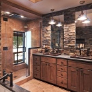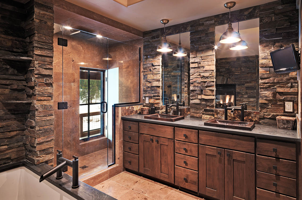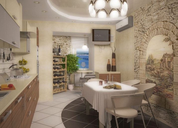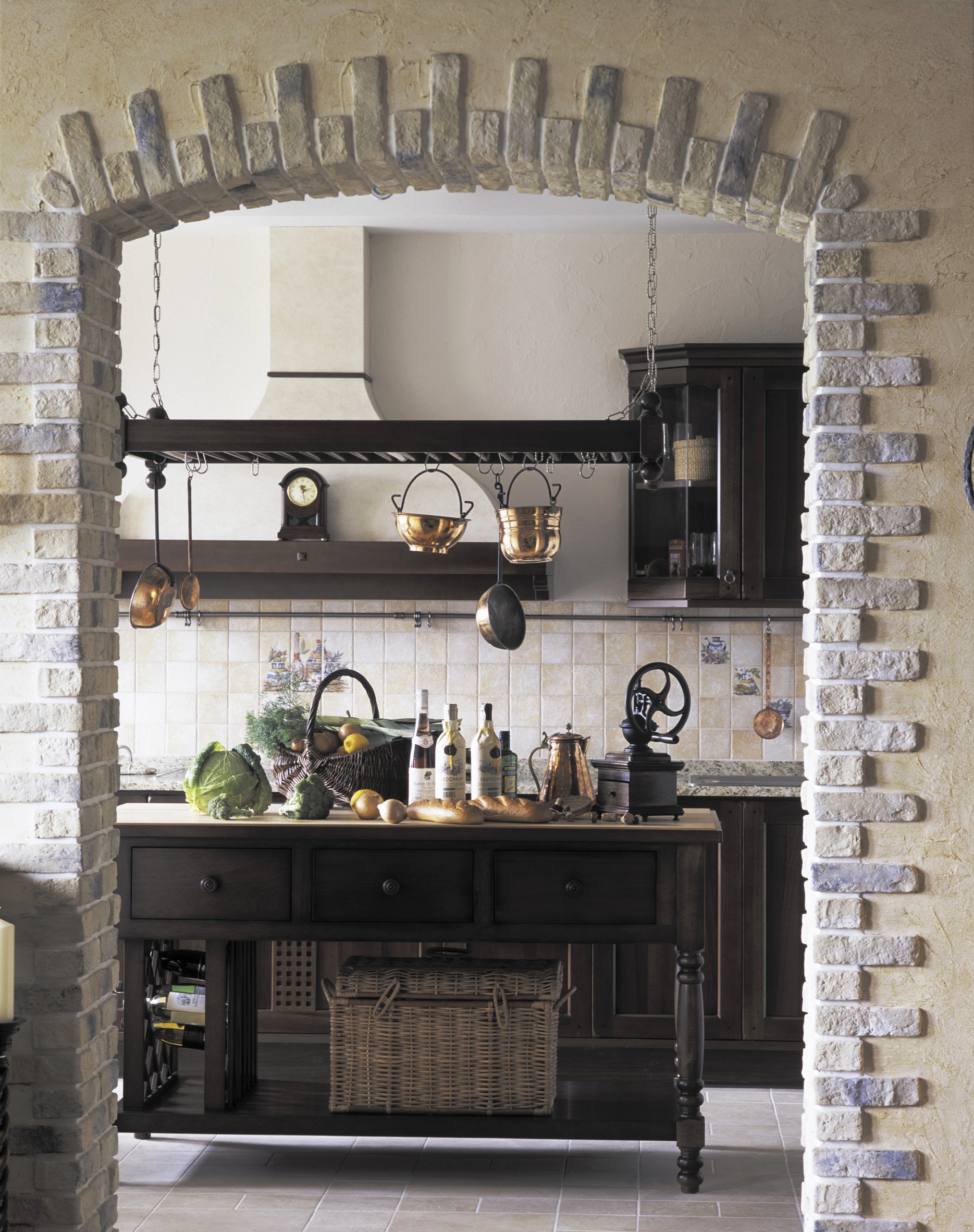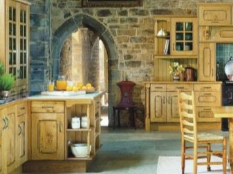 A stone arch will highlight the entrance to the kitchen. Such a kitchen with a stone arch and stone walls will resemble a cave and will look very original and mysterious.