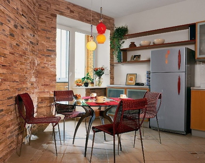 Designers are advised to create in the kitchen only one stone wall, which will be the highlight of the design of this room. In addition, experts recommend to give preference to horizontal masonry, because it will help to make the kitchen room visually wider and free. In order to bring in the dining area of comfort, it is enough to at least partially trim it with a stone of warm colors. Such a design decision will definitely be appreciated by your friends and relatives, it will help to make the kitchen very unusual and unique in its own way.