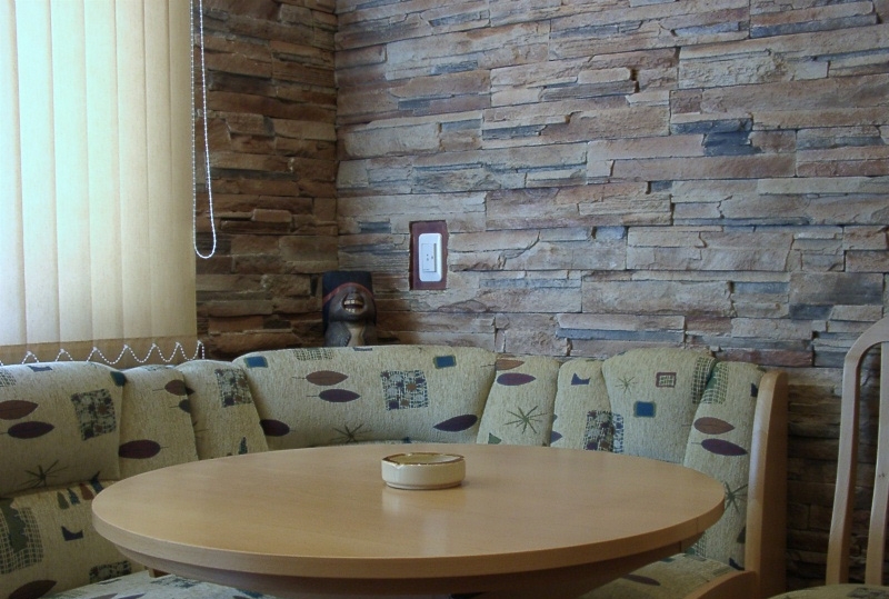 Manufacturers are artificial stone of various colors, as well as minerals with a very interesting texture. Stone can be chosen for any kitchen. When facing a wall with a decorative stone, there are no special requirements to the quality of the walls and floors, the structure and the texture of their surface. This stone is securely attached to any surface.