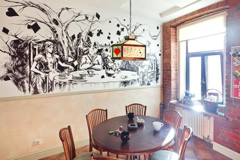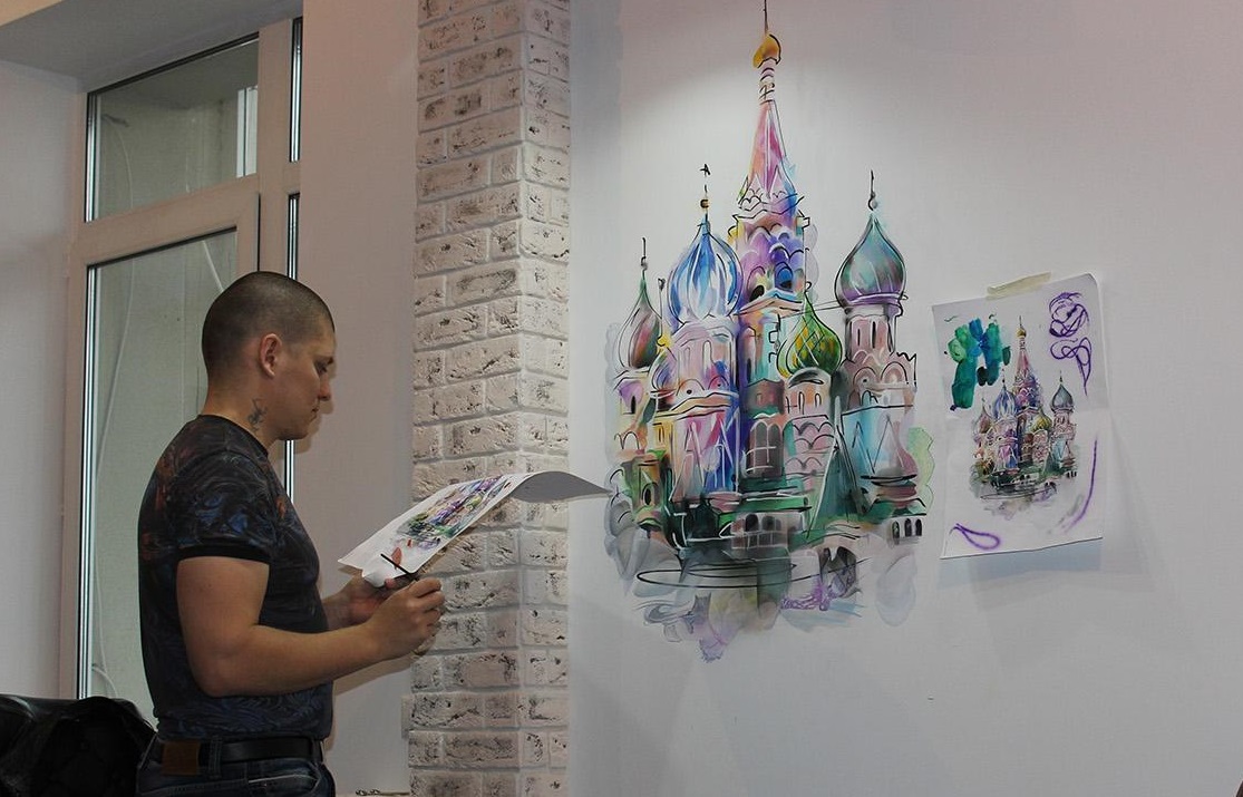 To make the finished drawing look more voluminous, complement the drawing along the edges with blurred lines. For maximum effect, use water-based paint. In order for the drawing to remain as long as possible on the first day, it is worth fixing it with a thin layer of varnish or covering the picture with transparent acrylic. If you comply with this condition, the image will remain on the wall for ten to fifteen years.