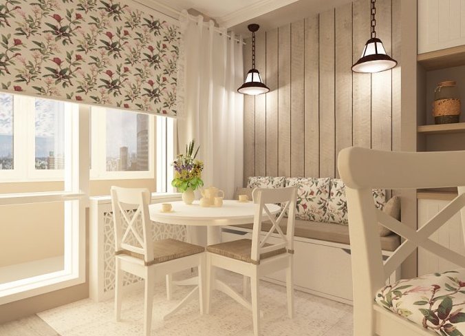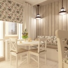 Sunny and bright kitchen with laminate in the apron area. A very good example showing that the choice of laminate is huge. The maximum light panels ideally adjoin to the milk plastic of kitchen furniture.