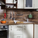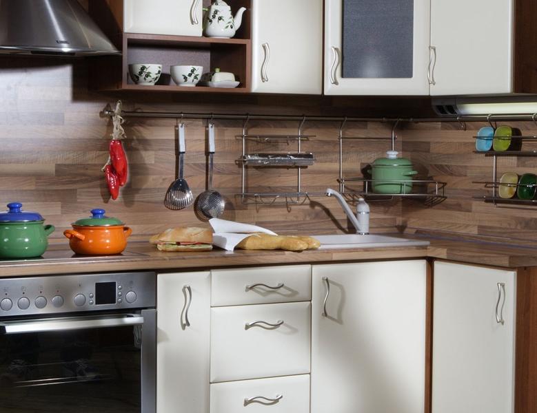 Laminate is very durable, therefore it is chosen as a floor covering. In our case, we are talking about finishing the walls and there is no need for special resistance to mechanical stress, so for the kitchen you can choose a thinner and cheaper option.In addition, laminate is a rather heavy material, so for the walls in the kitchen area, choose the lightest models.