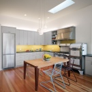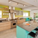 When creating an interior using staining, you can zone the kitchen. Combining different tones and shades, divide the kitchen according to functional features.