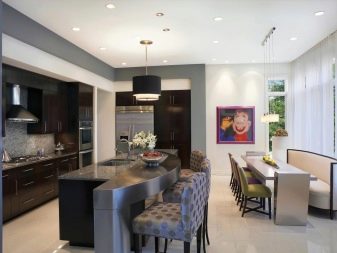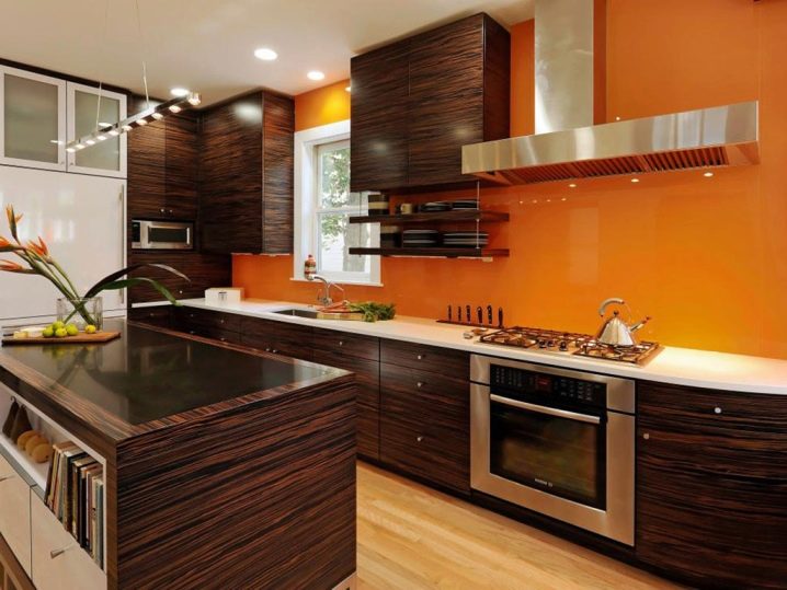 The best option in this case is painting the walls, as this coating is bright and beautiful, easy to clean, relatively easy to update and available for any family budget. At the same time on a smooth surface with well-created lighting beautifully visible spectacular gradient pattern, which can emphasize the individual style of the kitchen.