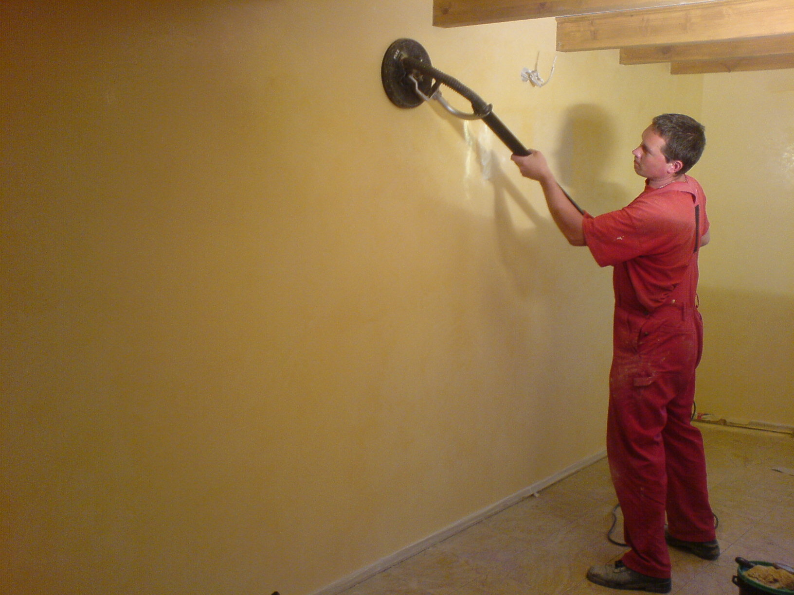 As a result, new flaws in the form of cracks do not appear. Finishing filler is spread over the top to level out minor defects. After drying, all plastered walls are sanded with a surface grinder or with circular movements of sandpaper.For this process, it is important to bright lighting, which will allow you to see all the minor defects. Due to grinding, a lot of dust appears, therefore it is necessary to use a respirator. In order to avoid dust from entering the kitchen, you can use wet towels, which must be placed on the threshold and in the doorway.