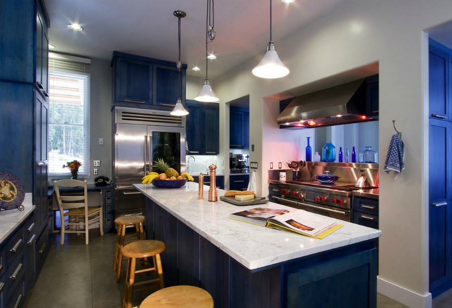 - blue - not very associated with food, suppresses appetite, as a result of which it is rarely used for painting walls in the kitchen;