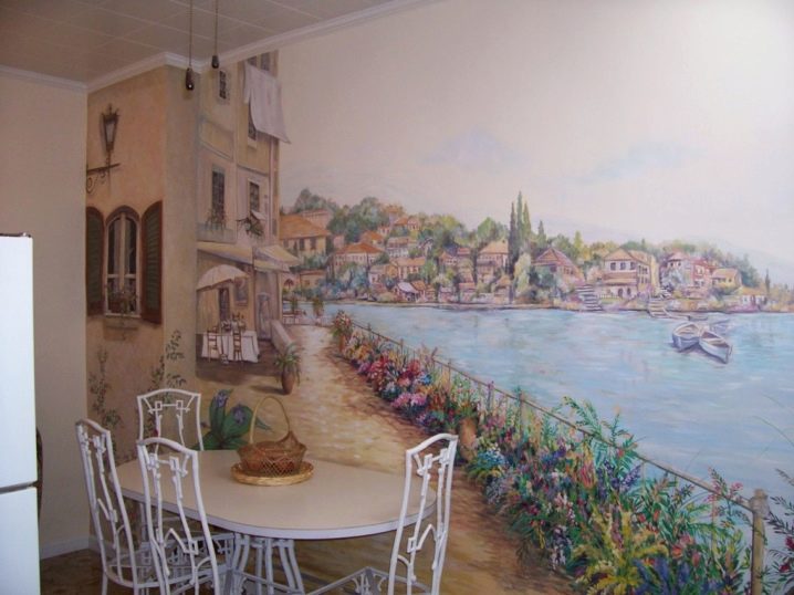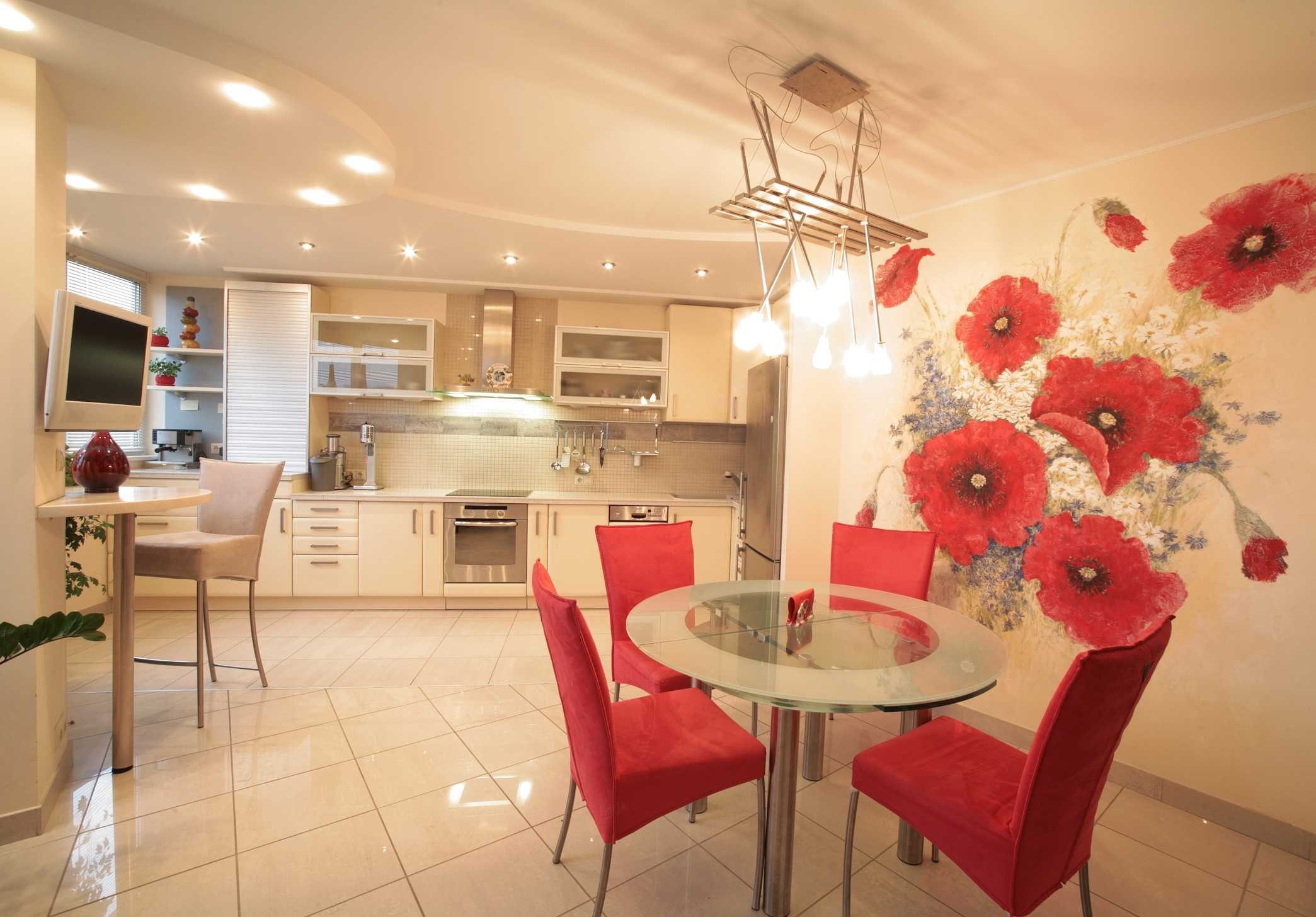 Recently, wall painting has become especially popular. To do this, you must have a talent for drawing. In his absence, it is better to invite a professional artist who can show the most successful examples of drawing on the walls and help realize the most daring ideas in creating a unique style. This work is painstaking and often takes several days, but the result is worth it. The kitchen is transformed and takes on an exclusive look.