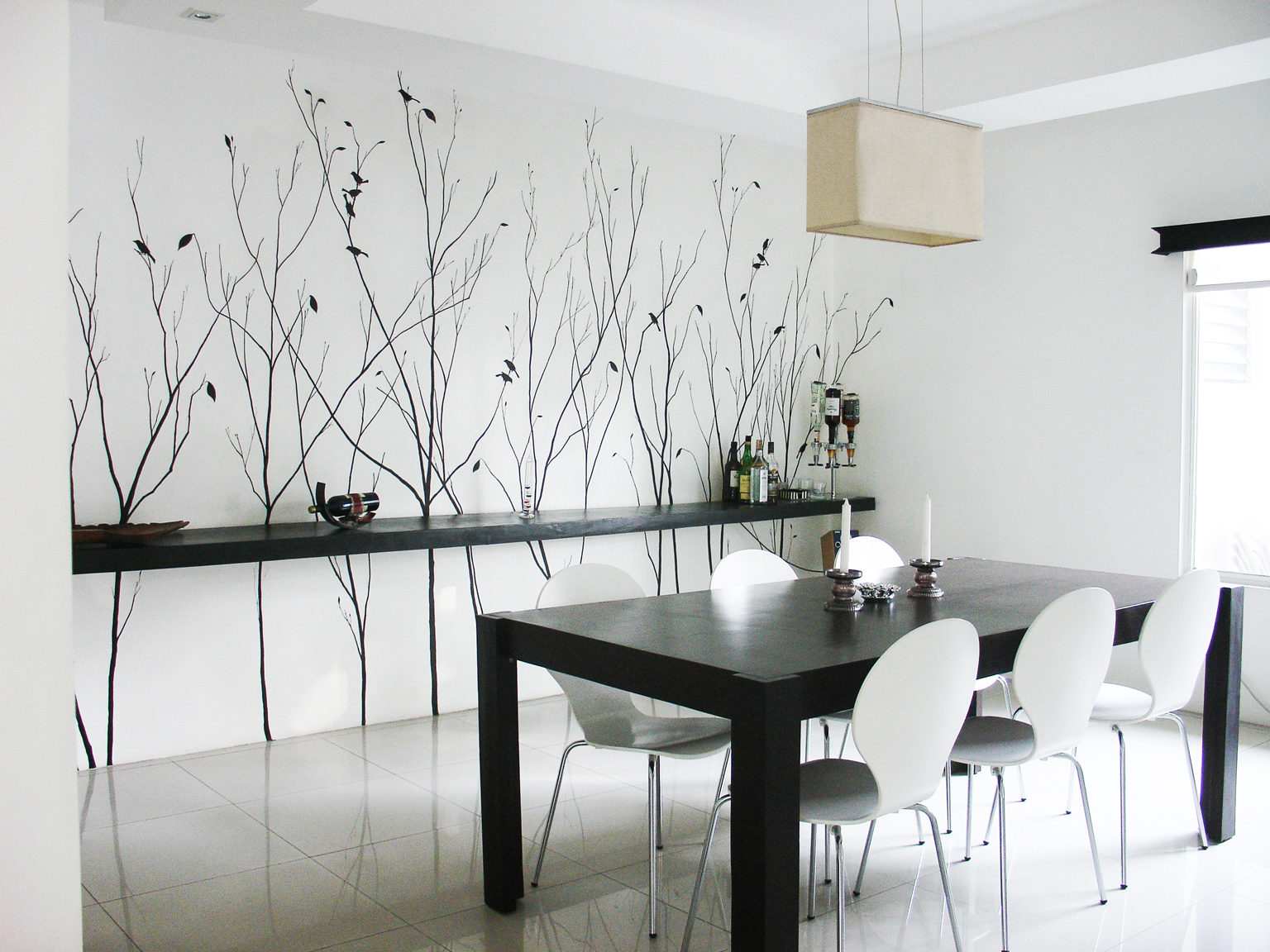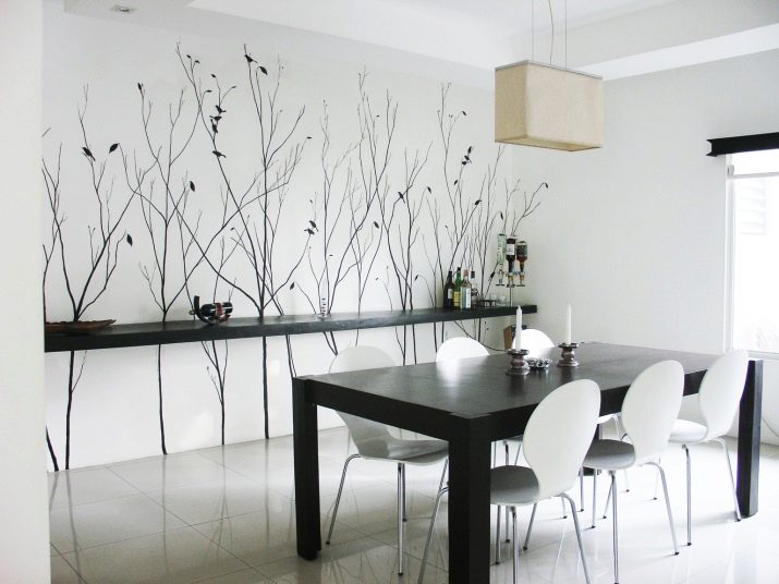 It’s easy to make a drawing on the wall, but the basis for applying the design - in this case, the wallpaper - must be of high quality. A great option for this is wallpaper for painting, it does not matter, they are white, or colored. White wallpaper can always be painted in the color that suits you. After pasting the wall on which the painting is applied, the pasted wallpaper is painted with the desired color (for example, dark brown), then a drawing is applied on the dried paint. Take your time and wait about a week for the paint on the wallpaper to dry well before it is painted.