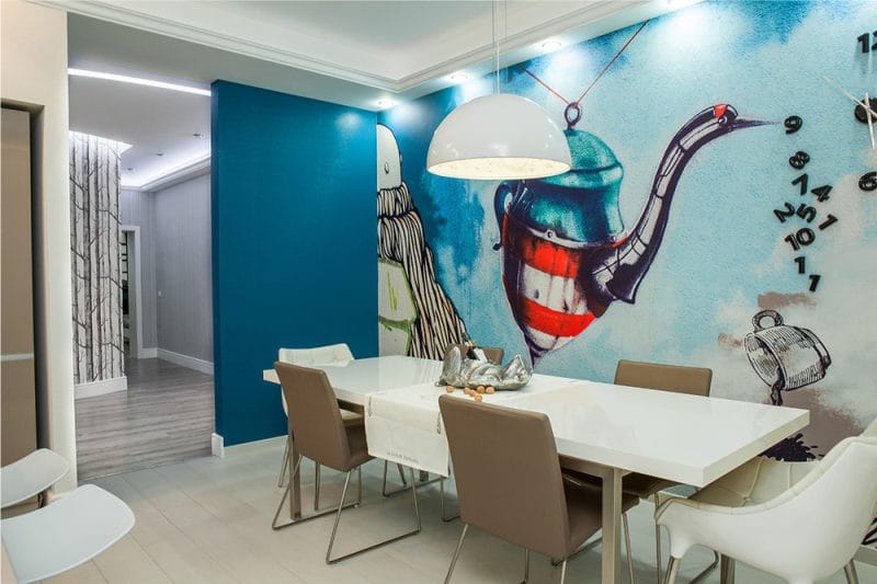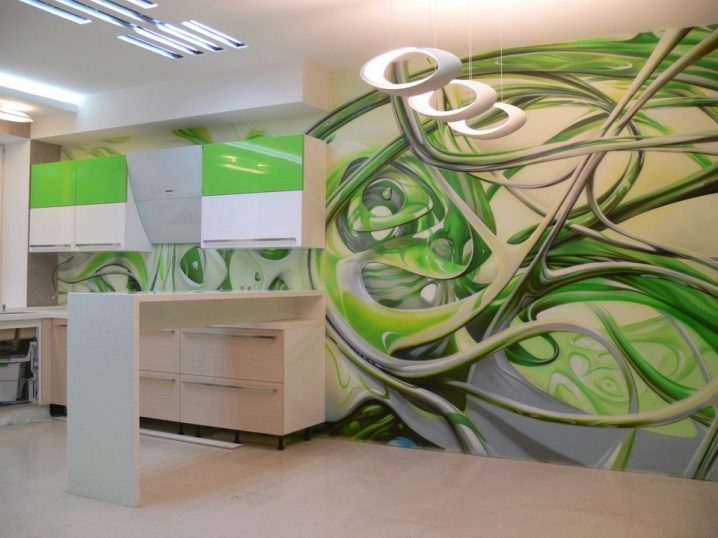 Abstraction, as an artistic solution, consists in the absence of painting of objectivity and logic. With the undoubted decorativeness of this style, it is only important not to overload the painted space with screaming paints and images that can quickly get bored.