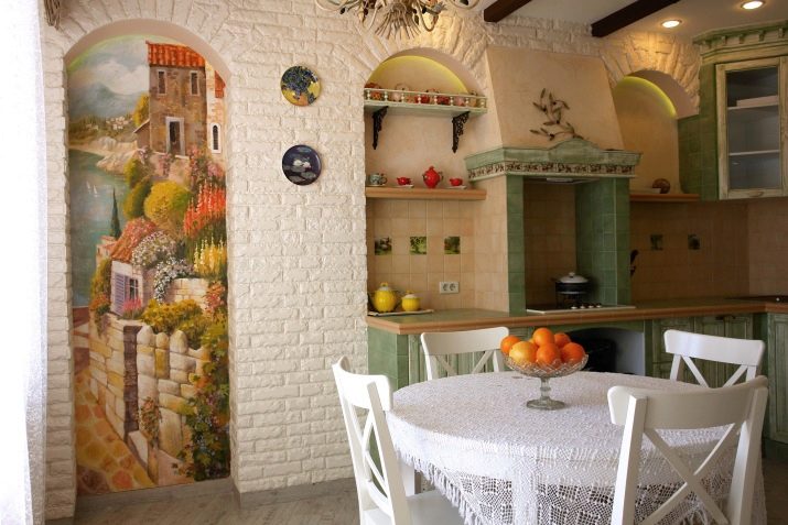 The design of the kitchen "country", i.e. in rural style, popular for many years. But, nevertheless, even with the advent of many other styles and technological capabilities, it is widely used. The warm atmosphere of this style is easy to achieve with the help of painting.