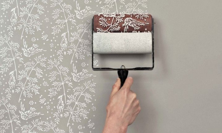 You may find it more convenient to apply the pattern on the wallpaper using the so-called textured roller. The textured roller is composed of two: a roller with a pattern and an ordinary rubber one. The technology of work is simple and very similar to coloring, but, nevertheless, it is better to pre-practice on an unnecessary piece of wallpaper.The image shows the technique of applying a pattern using an textured roller. This technology is especially convenient when applied to the wallpaper of plant or geometric pattern. Remember that before you apply a geometric pattern, you should mark the walls under it.