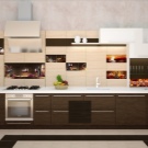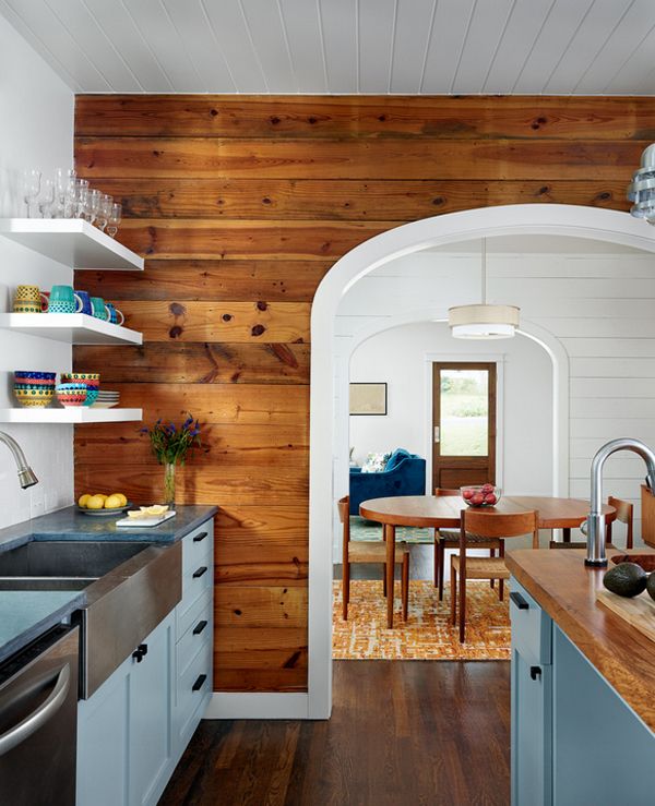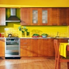 Experts do not recommend using laminate to finish the kitchen walls in the apron area, since this is the most dangerous area for such a coating. This material is better suited for wall decoration in the dining area of the kitchen. The kitchen, decorated with laminate, is distinguished by its originality, such finishing can be a highlight of the interior of your kitchen. The only disadvantage of the laminate is that it is a relatively expensive material, so in order to save it, you can finish the kitchen partially.