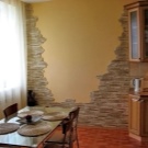 Such material is distinguished by its durability, and therefore it is an excellent solution for those who plan for many years not to make repairs in the kitchen. A significant positive feature of natural stone, as a material for decoration of kitchen walls, is that it does not require special care. The wall of stone, you can simply periodically wipe with a damp cloth with soapy water. That is why this material is considered very practical. The stone is a natural antistatic,therefore, such material will not collect dust and dirt in its relief.