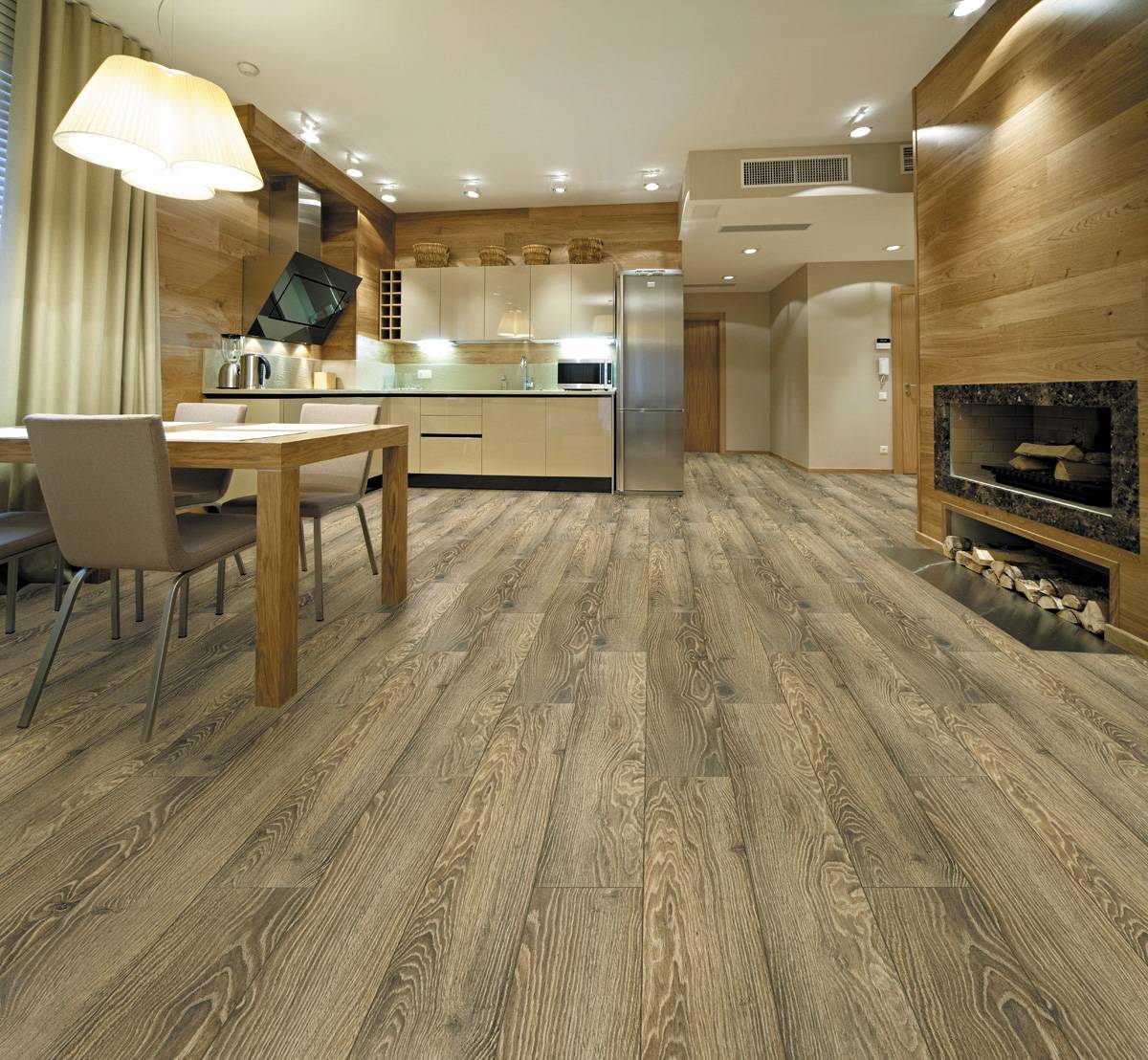 It is considered that laminate is a material that is used exclusively for flooring. But this is wrong, since the modern world of fashion dictates us a new order: now laminate is actively used for cladding walls. Laminate flooring is perfect for the walls of the kitchen. A kitchen with such a finish will look very rich and luxurious. Laminate as a finishing material is best suited for a kitchen decorated in a classic style, as well as in modern style.